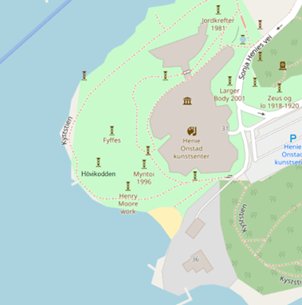 Med skulpturens placering på Hövikodden er man uden for Oslos centrum, men stadig i ’Stor Oslo’. Mange danskere har været i Oslo eller kender byen af omtale, hvorfor nærmere præsentation vel ikke er fornødent. Til gengæld tror jeg, at de færreste har været på Henie Onstad Kunstsenter. Ud fra tidligere besøg, stedets aktiviteter og hjemmeside har jeg en formodning om, at institutionen har en høj status i Norge i forhold til moderne kunst, men ikke et bredt publikum.