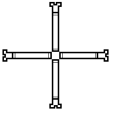 Skulpturens grundplan er et græsk kors formet som et slags ankerkors. Der er ikke en ’op og ned’ ende. Armene er 1½ mursten eller knap 40 cm bredde. Enderne af hver arm (pillerne) er udbygget til en bredde på 2½ sten (godt 60 cm) med et indtræk i midten på en ½ murstens bredde og 3/4 stens dybde.