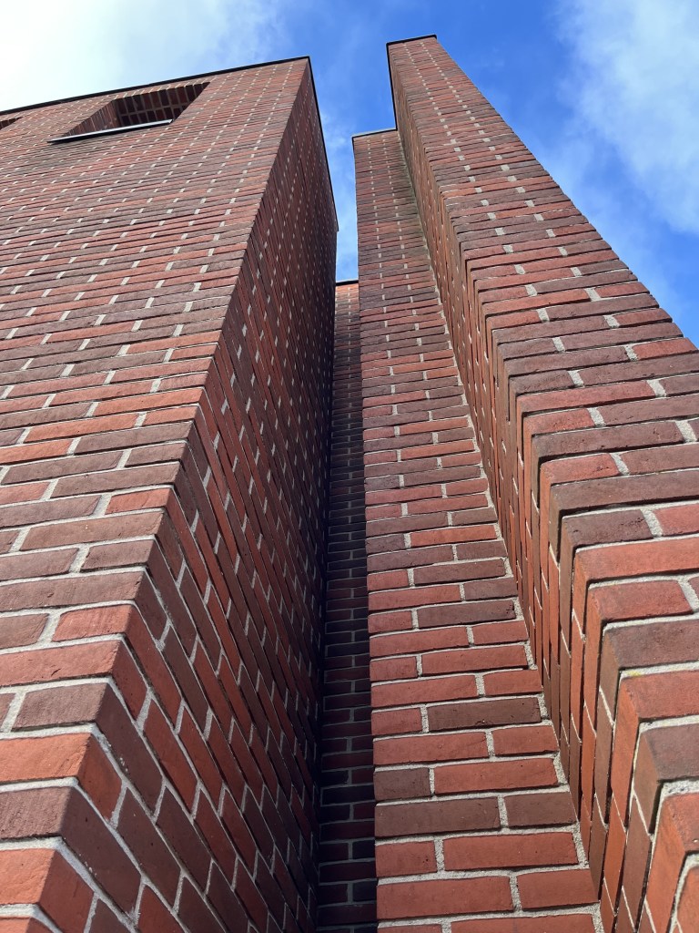 The title of the sculpture is Esbjerg. At the site, you cannot find a name plate or information about the title. Per Kirkeby himself says that it is called ‘Esbjerg‘ because it is located in Esbjerg[1]. Most people associate Esbjerg with the sea, fishing, oil, harsh weather… Dangers. But the place where the sculpture stands does not immediately have a relation to these things, but with Man?