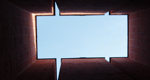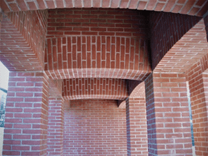 Det indre rum i tårnenes arkader minder med deres buer om en lille søjlehal – er vi i moskeen i Cordoba? Rummene har et gulv af betonfliser, der er orden her… Man er på en måde i et hus og ikke et hus, det er på samme tid transparent og åbent. Ser man op danner skakterne i tårnet et fint mønster med buer og i åbningerne ses lys/skyggevirkninger i simple firkanter.