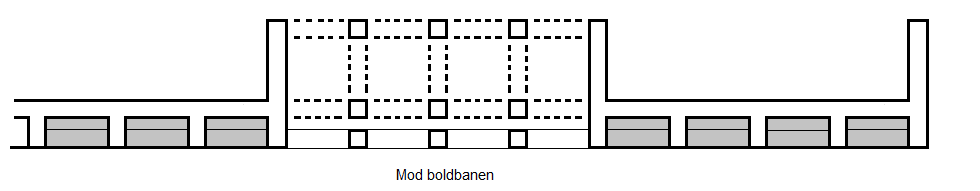 Sportshallens grundplan er et simpelt rektangel. Hallen består af selve hallen og tilhørende omklædningsrum.