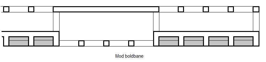 Det samlede resultat er mod vestsiden (mod boldbanen) en søjlelignende mur, der skifter mellem aflukkede rum med nicher/hylder og åbne rum med søjler. På østsiden ligner grundplan en slags mæander med indtræk og udtræk med søjler for neden.