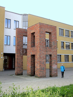 I forbindelse med byggeriet af en erhvervsskole indenfor sundhed/ medicin i den nordøstlige del af Berlin lavede Per Kirkeby en skulptur ved skolens indgang [1].
