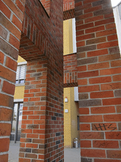 Hellersdorfs bygningskrop – ’bogstavmure’, 2 kroppe i et samspil om et ydre tårn og en indre smal, kort passage med åbne sider…