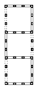 Opmærksomheden fanges først af de mange åbninger og søjler nederst – der er 24 åbninger i alt i det nederste plan. Man får en tanke om, hvorvidt det er stenene/murene eller åbningerne/lyset , der er det grundlæggende element i skulpturen. Det er, som man står med en slags ’dualkunst’, der både er dannet af noget fast, uigennemtrængeligt og noget som er flygtigt, uudfyldt og måske skrøbeligt…