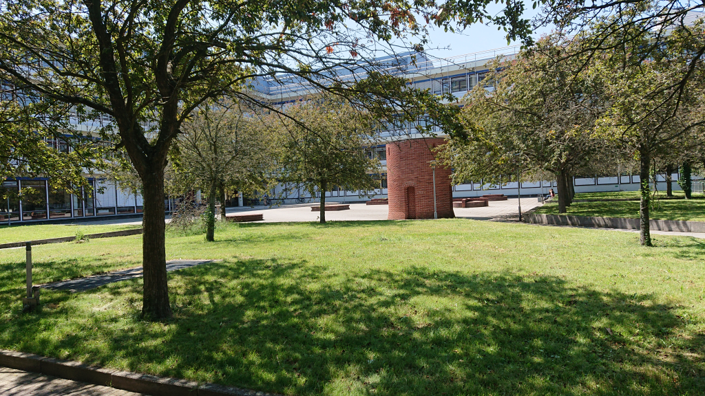 For the University of Karlsruhe, Per Kirkeby has made 6 building sculptures in the campus area of the Fakultät für Informatik. The sculptures were built in 1990 in red brick. On the site is a plaque where the sculptures are called Ziegelstein. In the Kunsthaus Bregenz’s catalogue of works, the Karlsruhe Universität is used to identify the work and names the individual sculptures according to their shape [1].