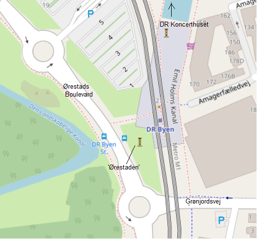 Adresse: Metrostation DR Byen, Hjørnet mellem Ørestads Boulevard/ Grønjordsvej