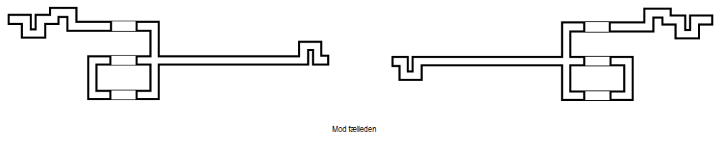 De to deles grundplaner er næsten en spejling af hinanden. Spejlingen af grundplanen med de to lange mure mod hinanden kan give en oplevelse af en dobbeltport, noget der skal åbne og lukke sig. Spejlingen signalerer også, at det er underordnet, hvilken ’mur’ man vælger, hvis man skal gennem skulpturen…