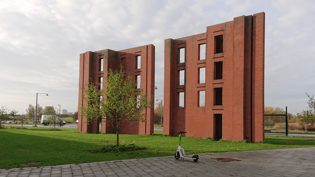 In Ørestaden on Amager – Copenhagen’s new district – stands one of Per Kirkeby’s large red brick sculptures. The sculpture stands between the Metro (DR-Byen) and Amager Fælled on a narrow lawn. It has no title. I believe it has many nicknames among the people who live or work in the area, and perhaps not flattering ones. In the following, I will refer to it by the name of the place, “Ørestaden”.