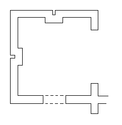 Havemuren er en lang, lige mur, der i den ene ende udvider sig til et kvadratisk rum med en stor åbning i den ene side – ‘sløjfen’.