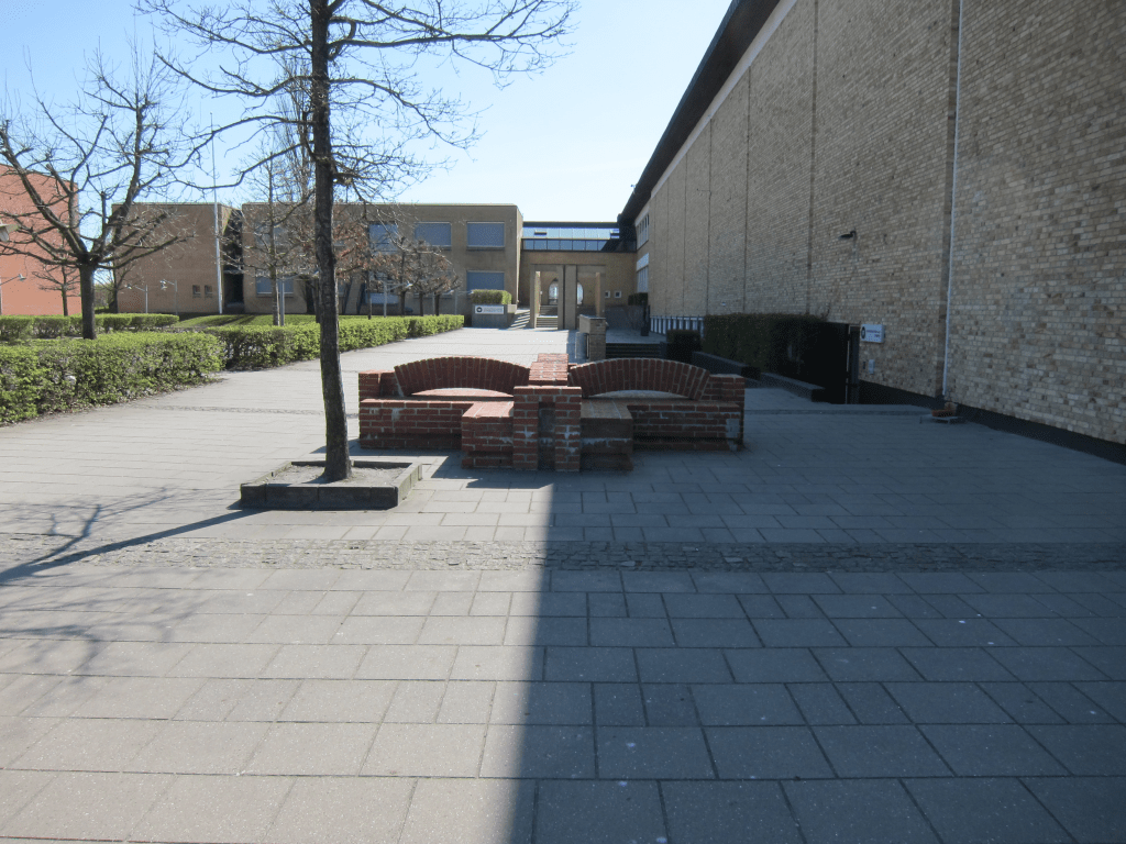The “Cross Bench” stands in front of Vesthimmerlands Gymnasium and HF in Aars, a grammar school.