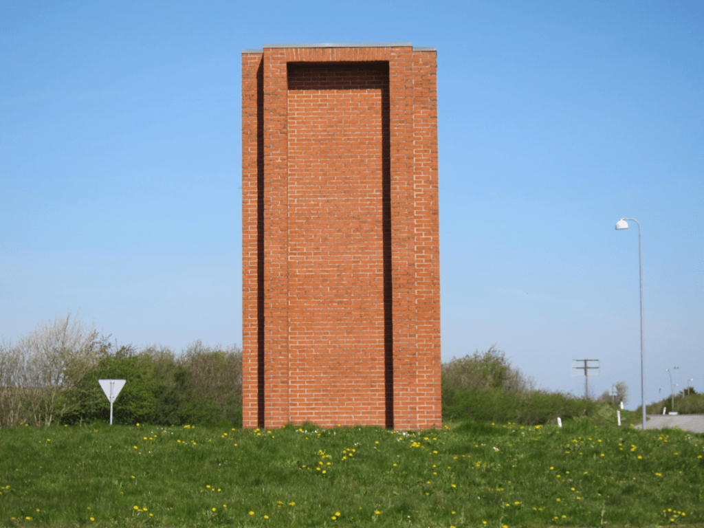 In Aars, four red brick building sculptures by Per Kirkeby are located as a kind of gate to the town. The sculptures are untitled, but are referred to as “Town gates” in the local tourist information, which I therefore use in the note.