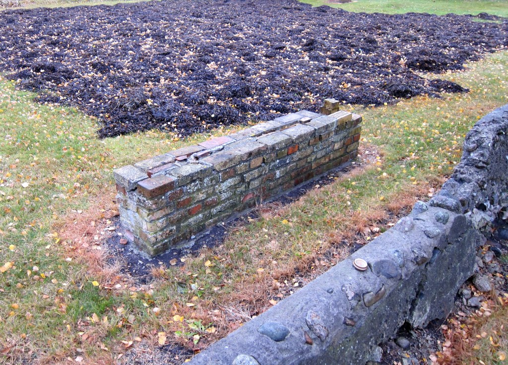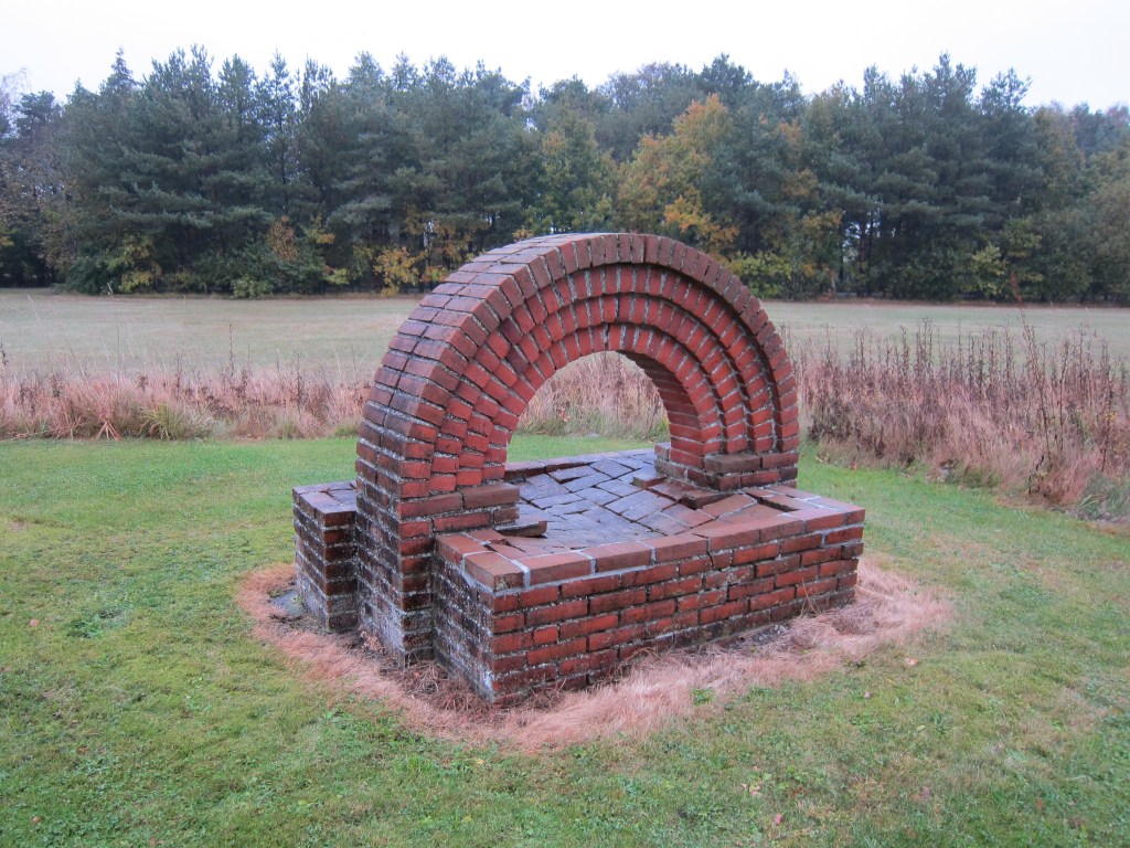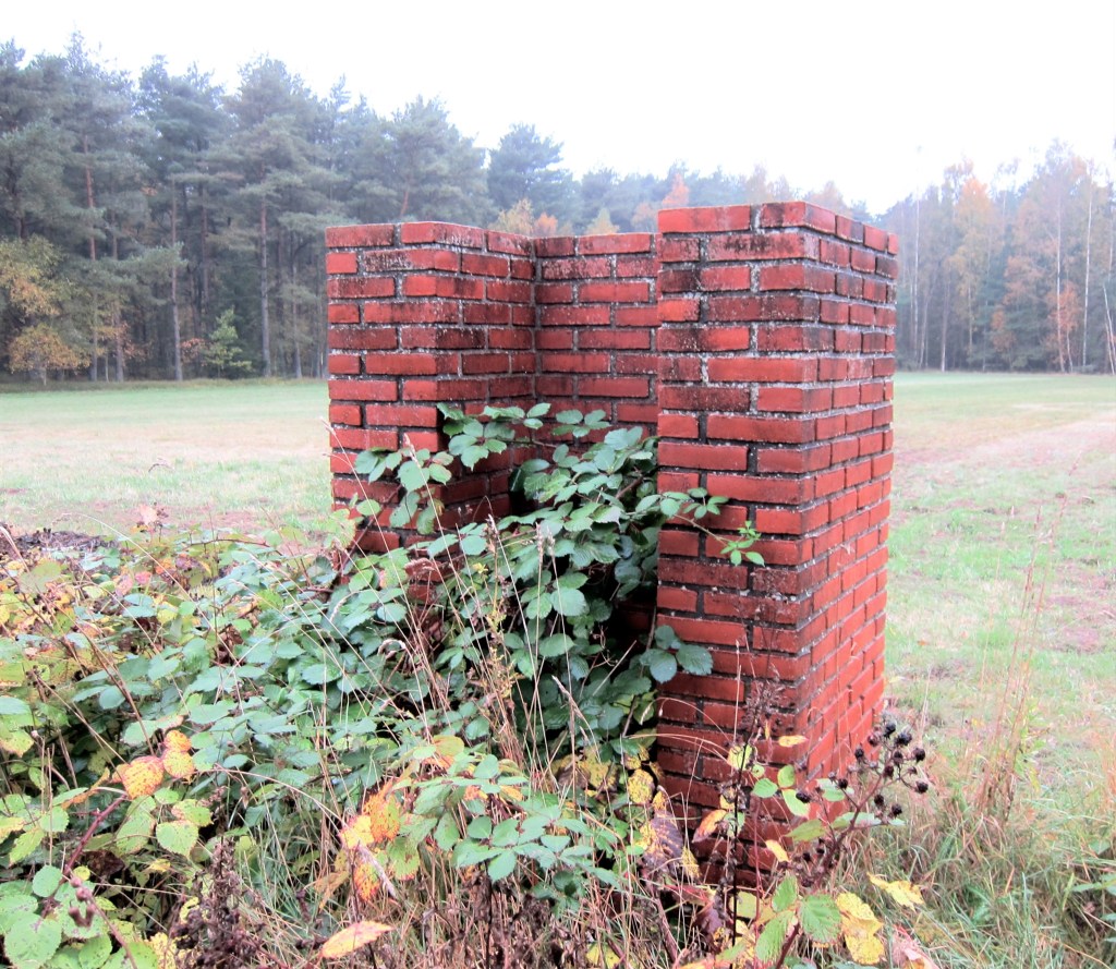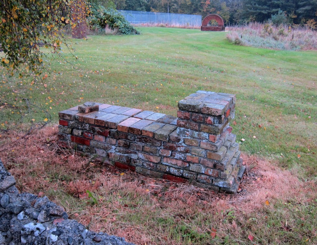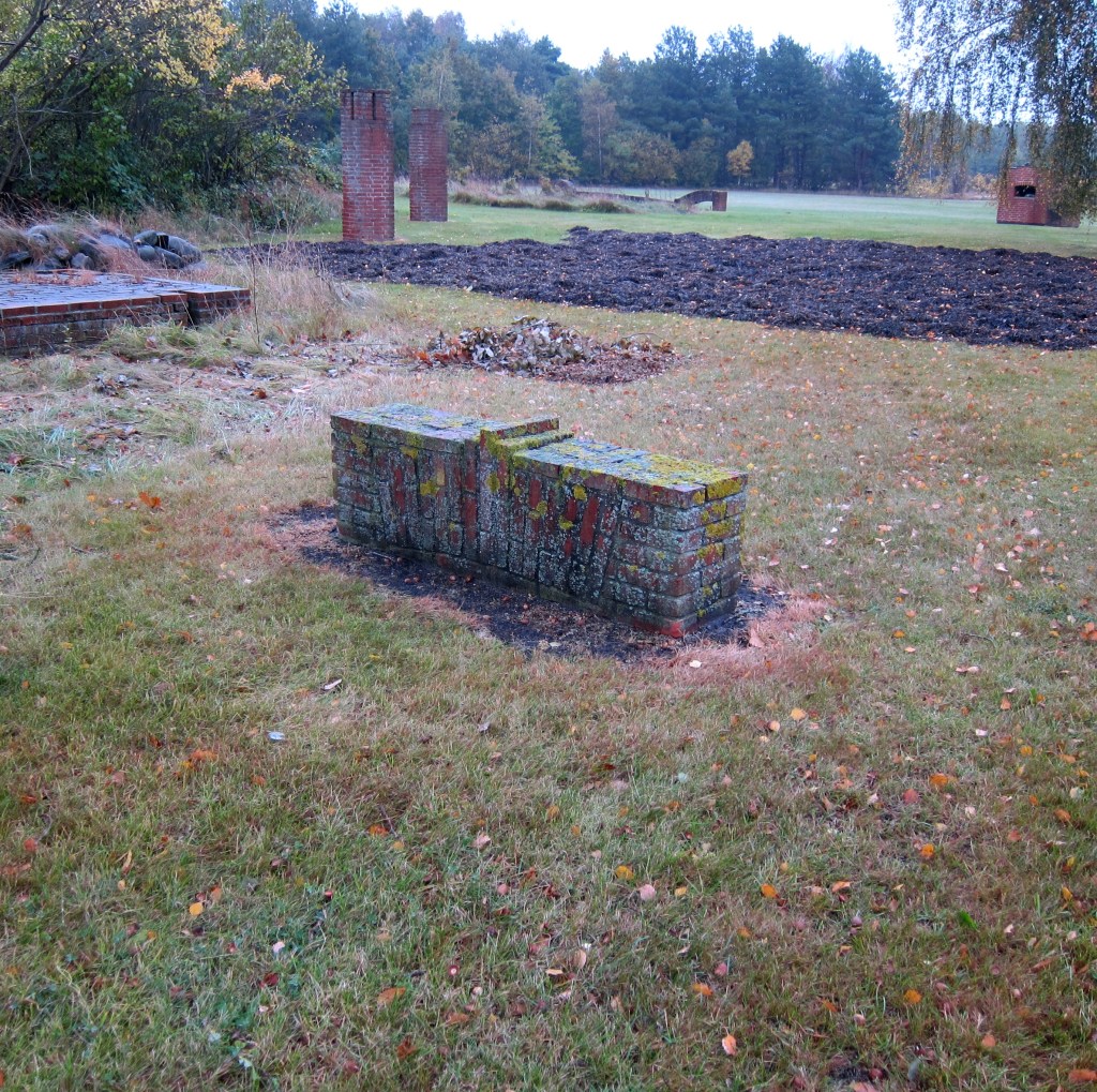 Ingen af skulpturerne har en særskilt sokkel, murstenene står direkte på græsset. Jeg oplever ikke, at de vokser op af græsset, snarere repræsenterer de noget, der er bragt ind i rummet. Og nogle har ikke kunnet stå distancen og er medtaget af tidens tand, sunket sammen, mursten faldet af etc., mens andre står som upåvirkede.