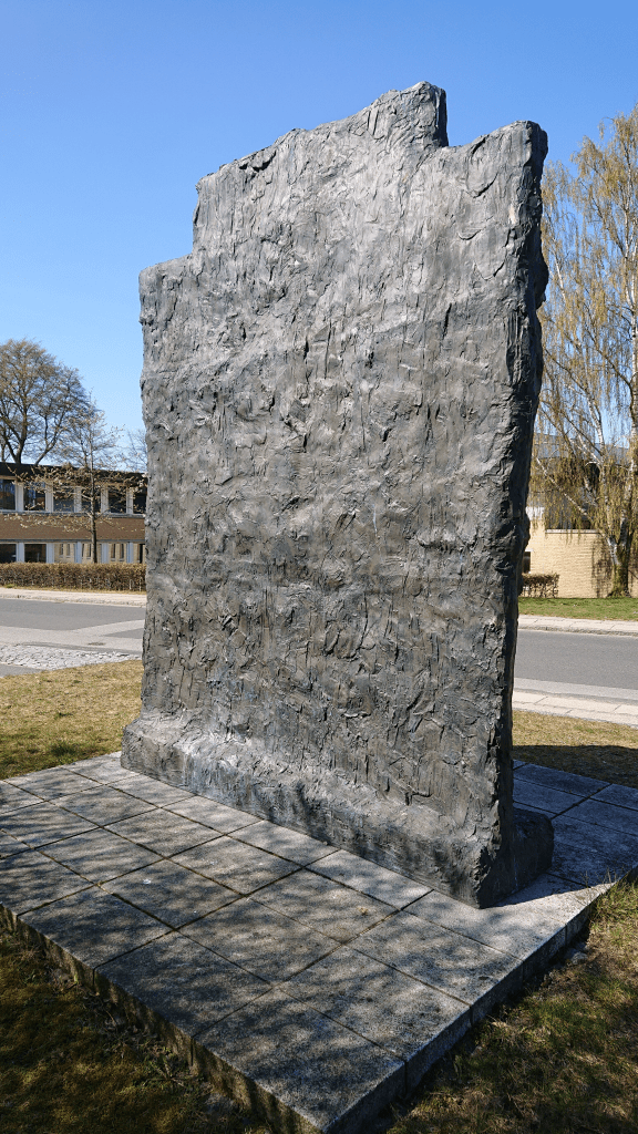 In front of Vesthimmerlands Gymnasium stands a large, black bronze sculpture by Per Kirkeby. The sculpture was erected in 1992 and placed at the entrance to the high school. Kirkeby has called his sculpture ‘Untitled (Heracles)‘ [1].