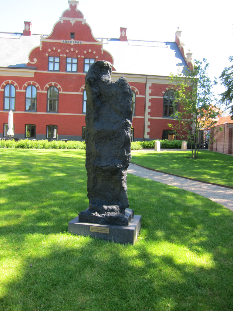 In Ribe Art Museum’s garden stands Per Kirkeby’s black bronze sculpture, Figure. The sculpture is not made specifically for the museum garden. It was originally created in 1983 and first placed in Ribe in connection with a donation in 2013.