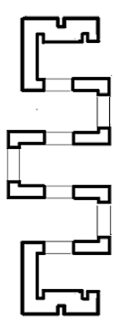 [3] Åbningernes overligger kan også varieres mellem højere/lavere buestik eller vandrette overliggere. Det er ikke afgørende i f t mæanderens grundudtryk og udeladt her. Der henvises til de enkelte noter