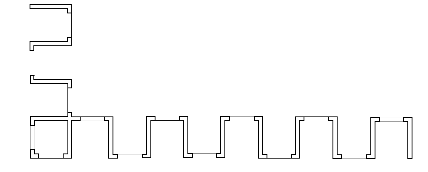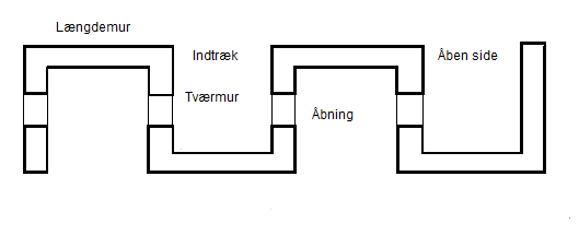Jeg bruger længdemure om murene i mæanderens længderetning og tværmure om murene på tværs af længderetningen, se figur 1: