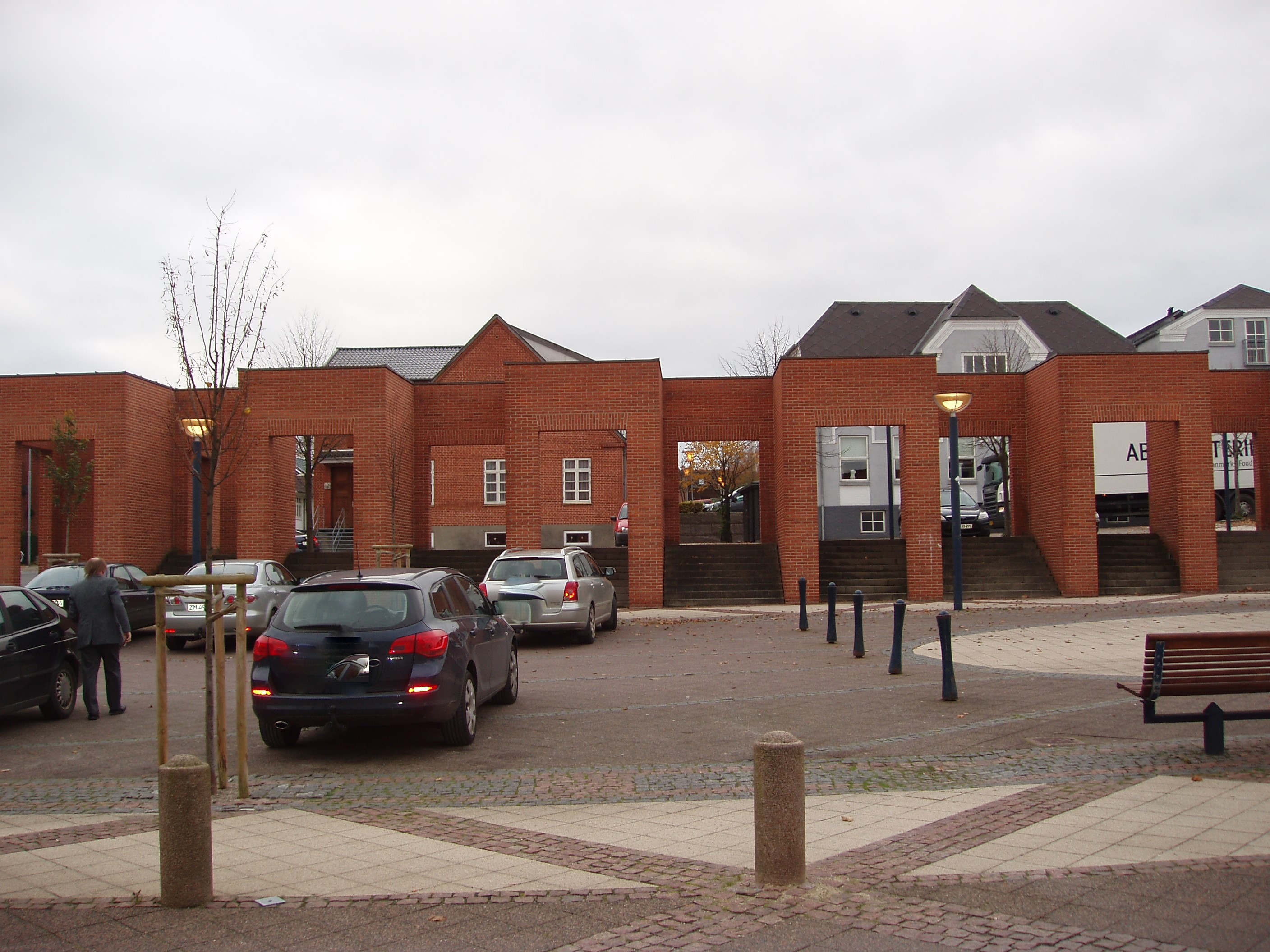 Når Kirkeby lægger en stor åbning i længdemurene, får man oplevelse af at gå ind og ud af en port til et rum (Kimbrer torvet, Meldahlsgade).