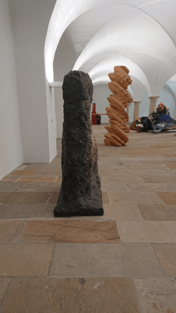 Foto 3: Skulpturhallen, ’Tor I’ set fra venstre og Tony Cragg’s ’Ever after’