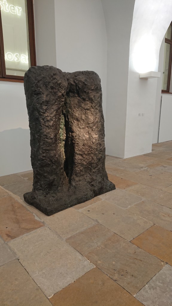 My immediate impression of Tor I is a stump, a remnant of a fallen or felled tree. It creates reminders of the impermanence of everything, life and death, but also of a memory, the stump as the monument of the tree and of something that once was and its deep roots. The large crevice can give associations to the woman’s womb, but also to an open wound and pain or to an opening to the interior of the earth with death and rebirth or the fairy tales of childhood.