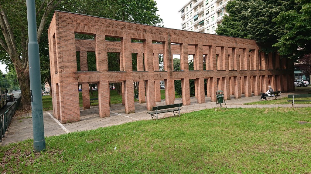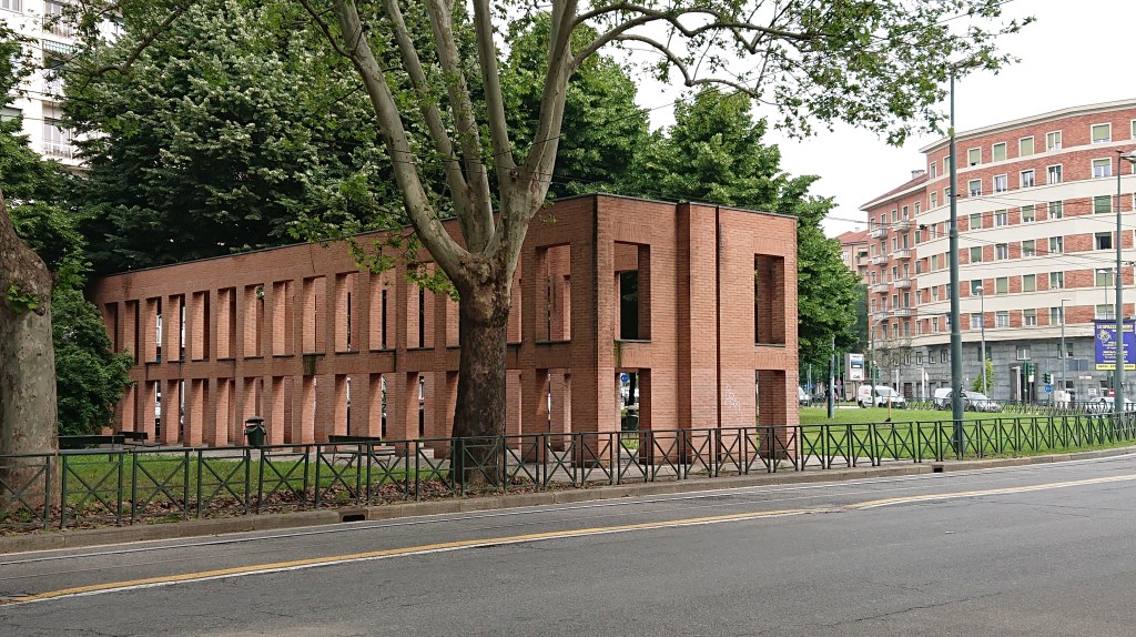 Den tætte placering til Largo Orbassano og associationerne til, at det er et værk, der stod her i forvejen, som man var nødt til at lægge gadeforløbet uden om, kan føre tankerne hen på romerske ruiner, man finder ved anlæg af veje og som får lov til at blive stående som ’uforklarlige’ murrester med en skæv placering i forhold til trafikanlægget.