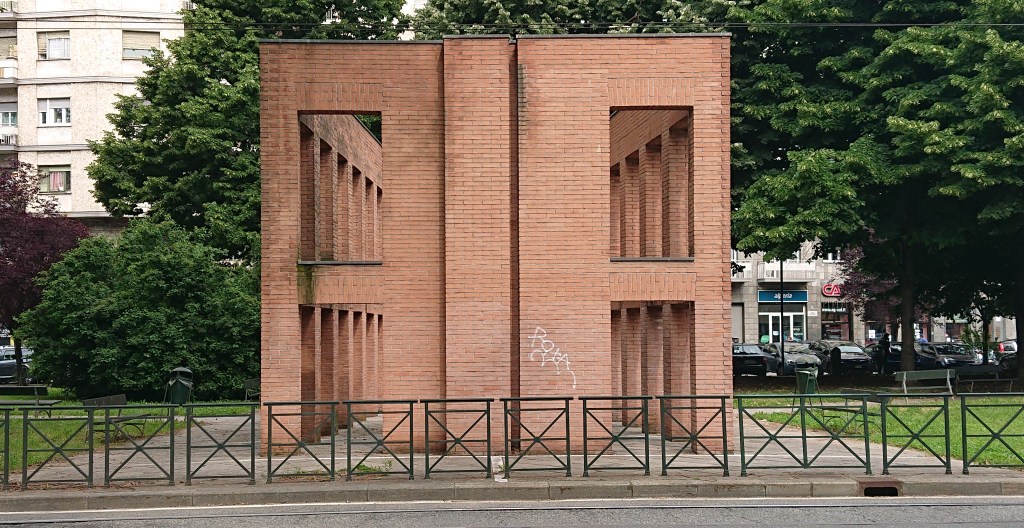 Med de mange åbninger ligner værket umiddelbart en form for kolonnade. Den gamle bydel i Torino er fyldt med arkader, og Kirkeby knytter værket yderligere til byen ved at bruge mursten af samme type som i mange af byens gamle bygninger. Og ved at bruge en bund af stenfliser, som er den typiske belægning på byens pladser.