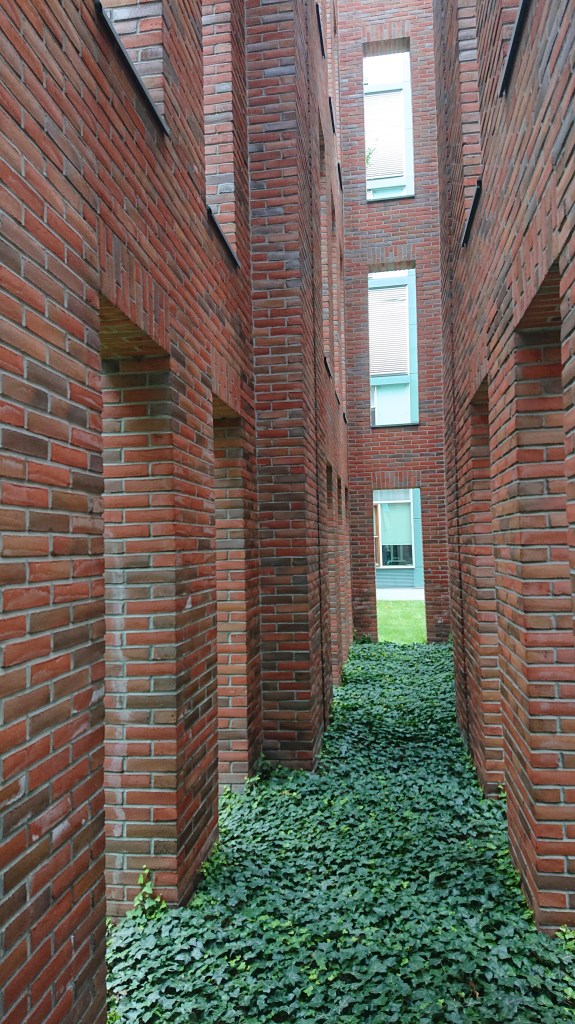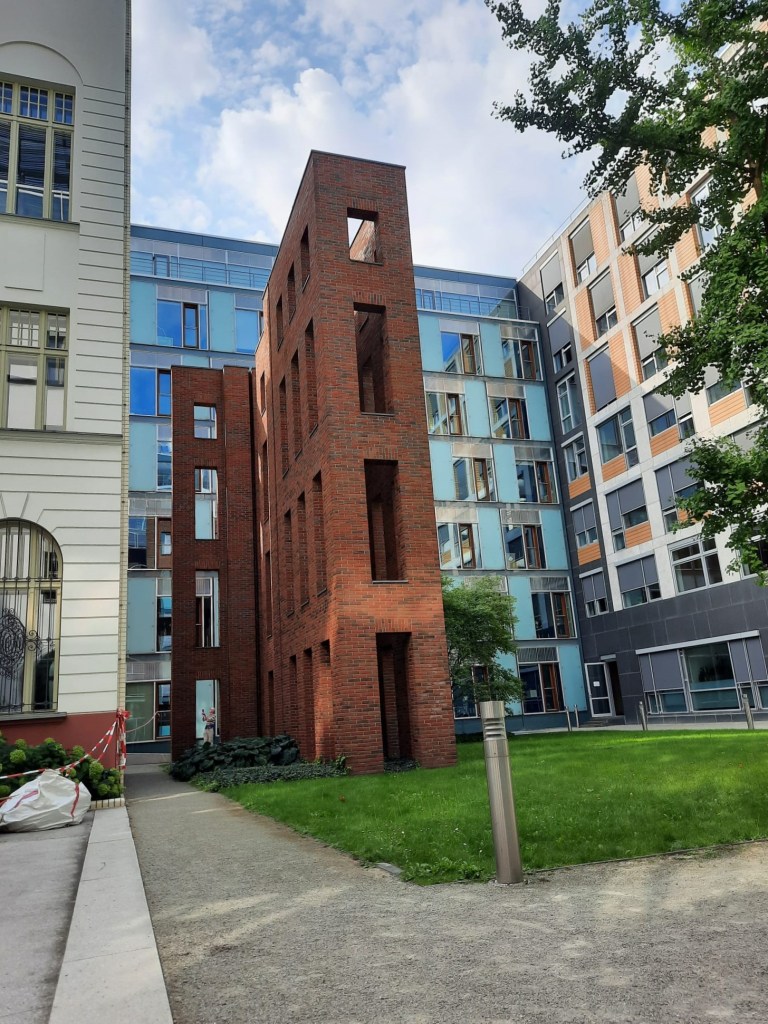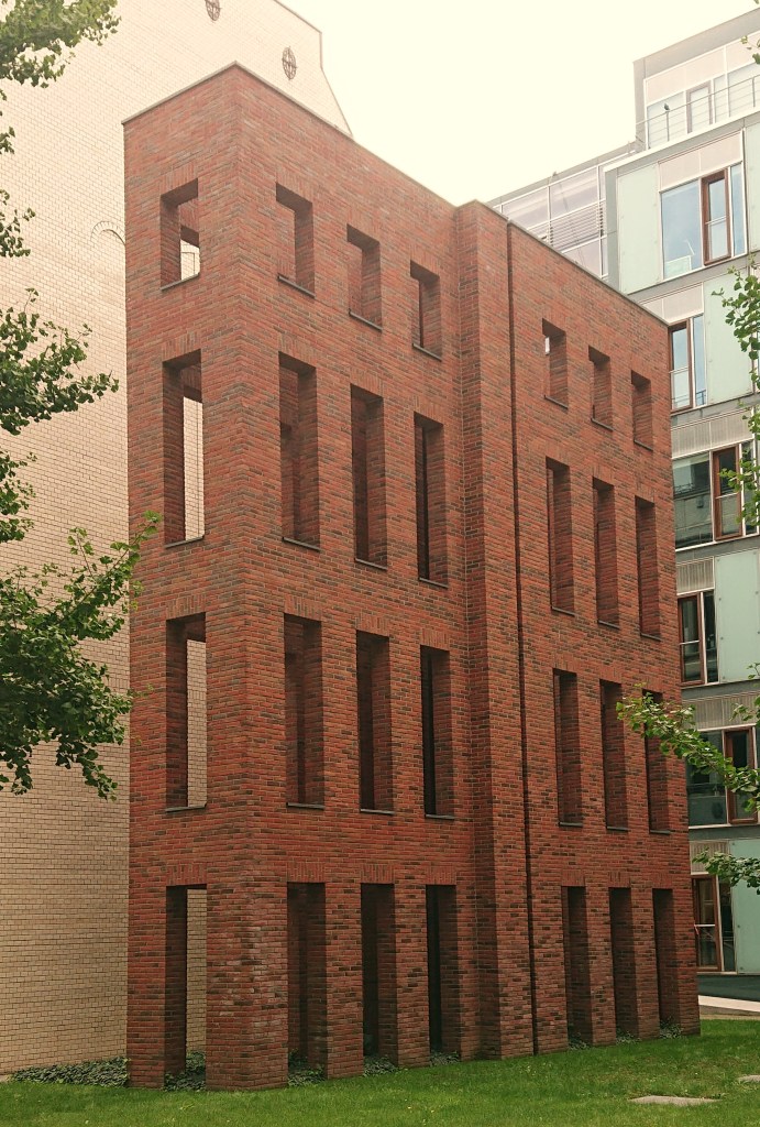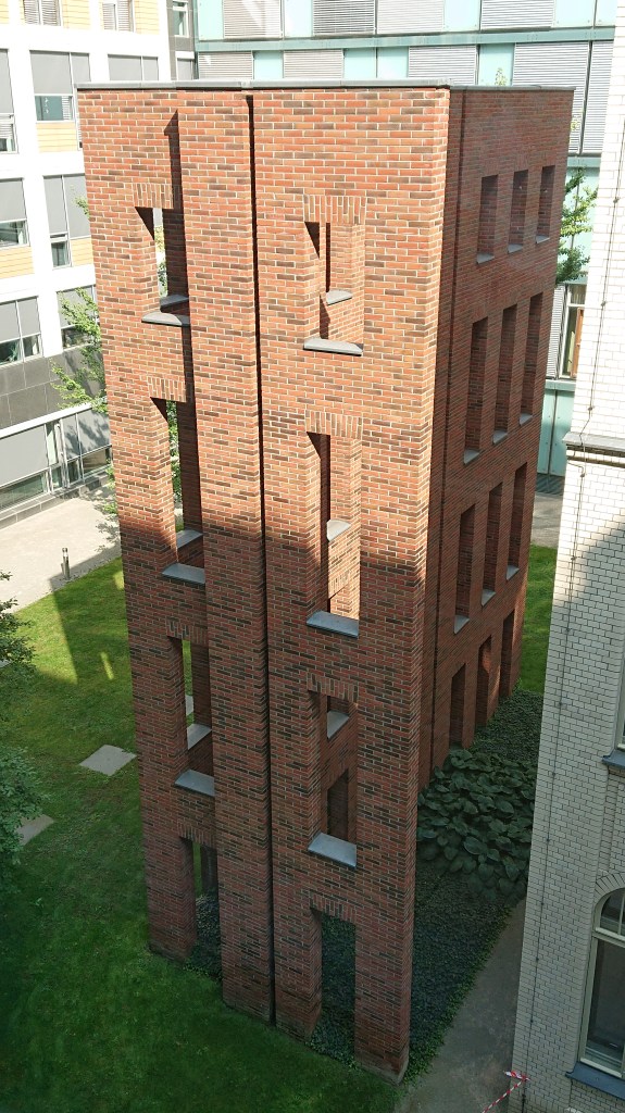 Per Kirkeby has created a brick sculpture for the German Bundestag in Berlin, an aesthetically pleasing work that ties in with the function of the place. The work stands in an inner courtyard in a large building complex with rooms for the Bundestag. The work is untitled, so I am using the name of the location, Jakob-Kaiser-Haus.