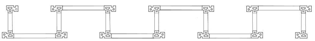På afstand kan værket minde om en kolonnade[8]. En kolonnade leder blikket videre, det gør Recklinghausen også, men mæanderen gør det horisontale mindre stramt, og giver det indre rumforløb mere vægt. Og måske en tvetydighed i værket, som om der er noget mellem inde og ude. Forskellen i højden mellem overmurene på tværs og på langs betyder, at rummene lukker sig mere på langs. Det gør, at værket ikke bare er en foldet mur, men noget mere.