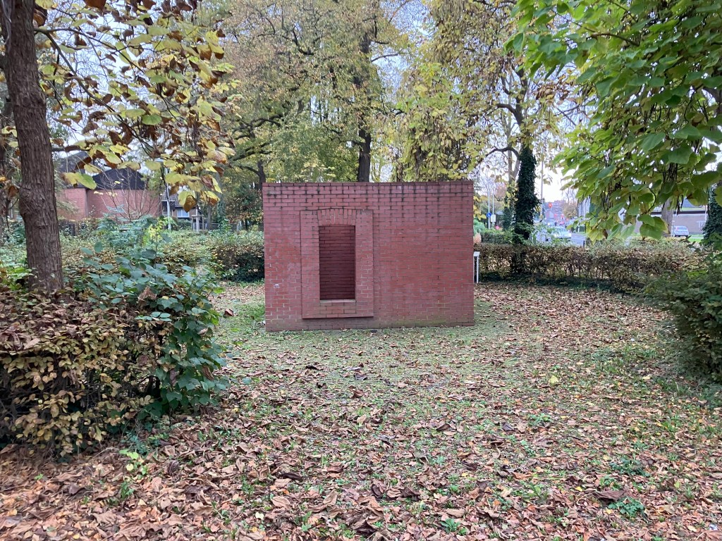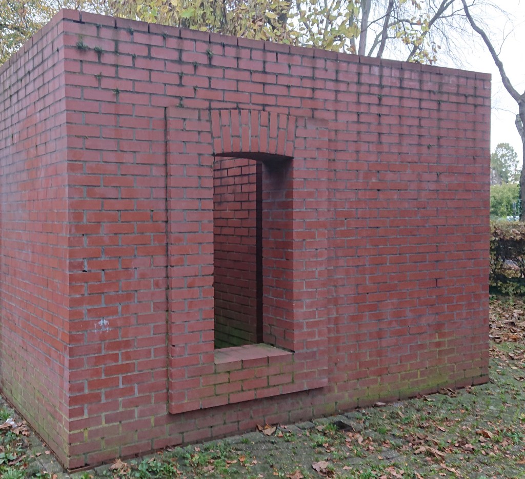 My experience of the work is influenced by my prior knowledge of the sauvastika as the inner sculpture. And by Germany’s history with the Nazi era. I see the sauvastika as a symbol of what Nazism represented is latently present at the societal and individual levels, “only” in a different external form. And as a message that it must be kept locked away and kept an eye on. But the proximity to the church, the castle and the war memorial also evokes other associations, which do not, however, exclude the sauvastika. The work can be seen as a chapel for the church, where the dead are kept before the funeral, or as a kind of confessional. In relation to the castle, the work can be perceived as a ruin (a remnant) of a former, older castle on the site, which has been left untouched, or Frechen-Bachem can be the castle’s mausoleum, where the ancestors and the past are buried. The war memorial connects Kirkeby’s work with death and interrupted lives. And Frechen-Bachem can be seen as a memorial to the victims of World War II and Nazism.