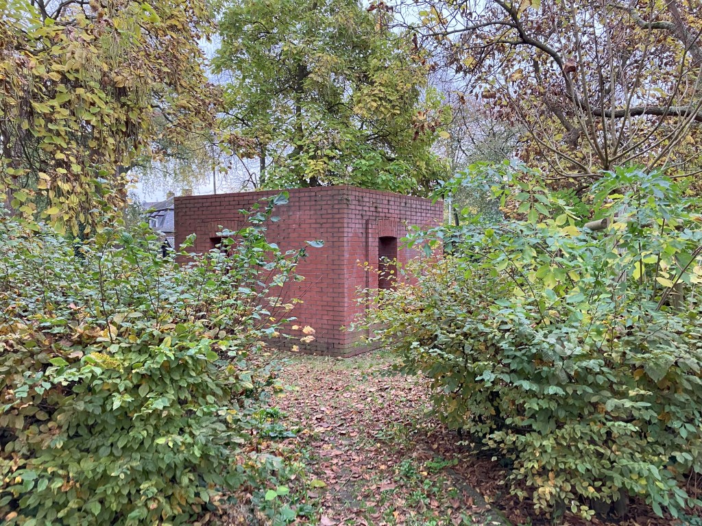 Det grønne anlæg er en blanding af træer, høje og lave bøgehække plantet i forskellige formationer samt store flisearealer. Det er et stille sted en formiddag i oktober. Som sådan er det ikke et uhyggeligt sted, men der er en stemning af forfald med visne blade, efterårsfarver og en følelse af at være et andet sted end i en forstad. Sammenhængen med krigsmindesmærket i den nordlige ende forbinder det med død og ødelæggelse, og man får en tanke om Kirkebys værk også er et mindesmærke.