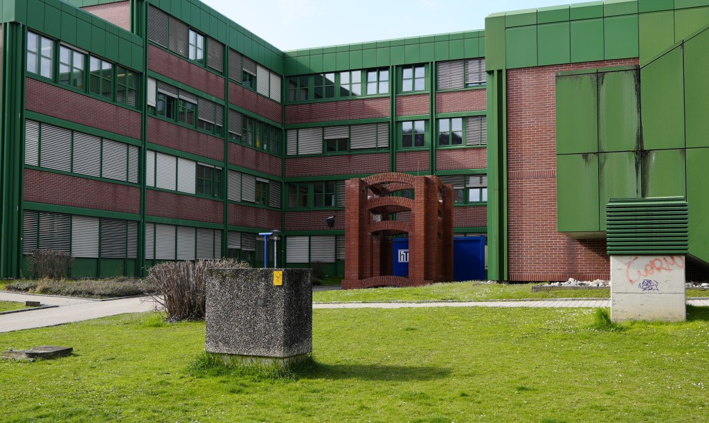 At a technical school in Graz stands a brick sculpture by Per Kirkeby. The sculpture can be described as a small transparent square tower with distinctive arches. The tower is 4.5 metres high and 3.7 metres wide.
