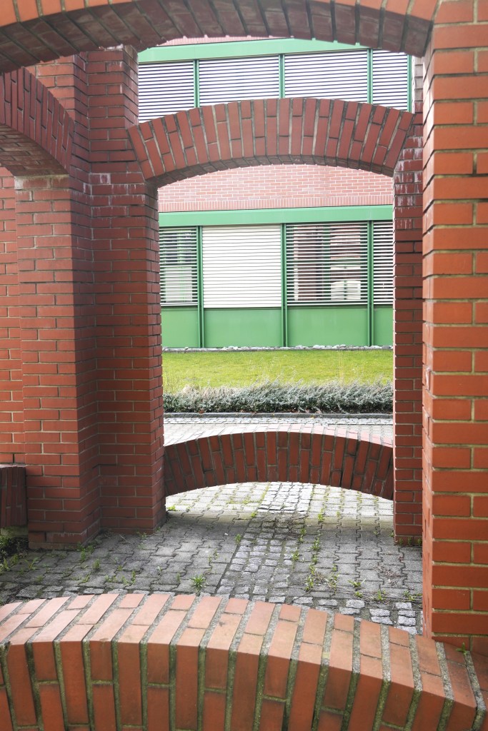 With its location in the passage, the work stands at a transition between different worlds. A transition means that you have to leave something behind before you can start something new/different. Are the arches a kind of coat rack on which you can hang your “overcoat” so that you are ready for school? That the work is a propylaea for the school.